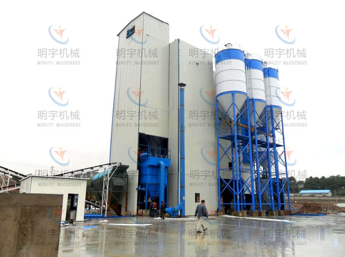 大型預(yù)拌砂漿生產(chǎn)線,主要由原料儲存?zhèn)}、配料系統(tǒng)、待混倉、2-6立方主混合機、原料儲存?zhèn)}、輸送機、電腦自動計量包裝機(適應(yīng)于閥口袋)、電控系統(tǒng)等組成。適應(yīng)于普通干混砌筑砂漿的生產(chǎn)(如:抹灰砂漿、砌筑砂漿地坪砂漿、裝飾砂漿、防水砂漿等)?;旌蠙C內(nèi)膽和機件全部采用專用耐磨材料制造,耐磨性特別強,使用壽命長,具有國內(nèi)同類產(chǎn)品不可比擬的優(yōu)越性,在同行業(yè)中占據(jù)地位。整套設(shè)備性能穩(wěn)定,物料混合均勻,具有能耗低、投資少、見效快、占地小、操作簡單等諸多優(yōu)點,5-8人即可操作,每次可以混合砂漿4-6噸,每小時可生產(chǎn)20-40噸左右。